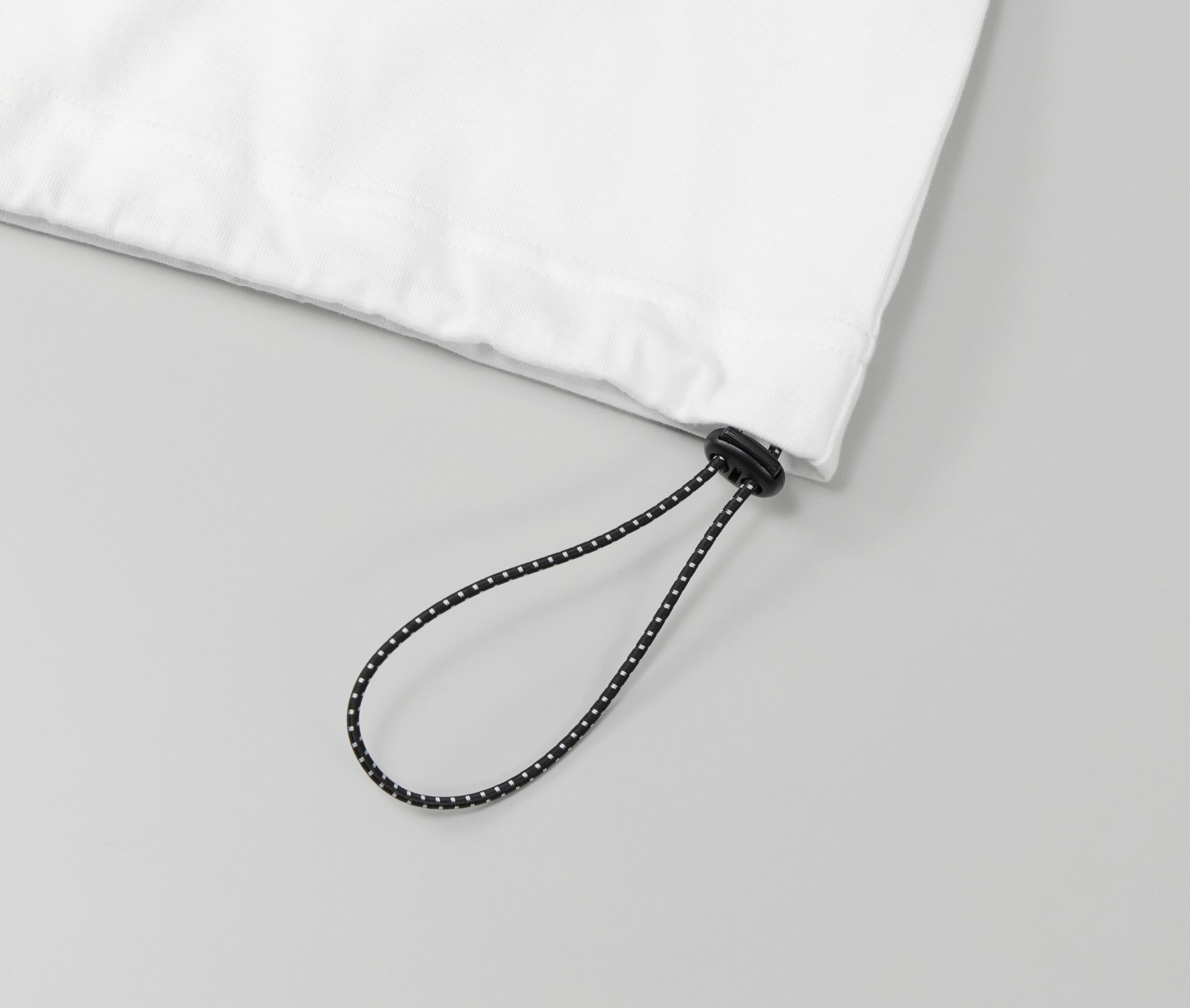 左右の裾口に、アクセントとなるバイカラーのドローコードを配したTシャツ。ドロップショルダーで全体的にゆったりとしたシルエットに仕上げており、裾を絞って好みの丈に調整することでシルエットに変化をくわえられます。さらに、裾を絞らずそのまま着ればリラックスした雰囲気に。また、カジュアルでありながらも、毛羽の少ない「コンパクトコーマ糸」を使用した上質でなめらかな生地を採用しているため、大人の品が漂います。綿100%生地なので、お好みの加工を施すことも可能。夏フェスのグッズや、ゴープコア系アイテムなど、幅広い用途にアジャストすること間違いなしの一品です!
